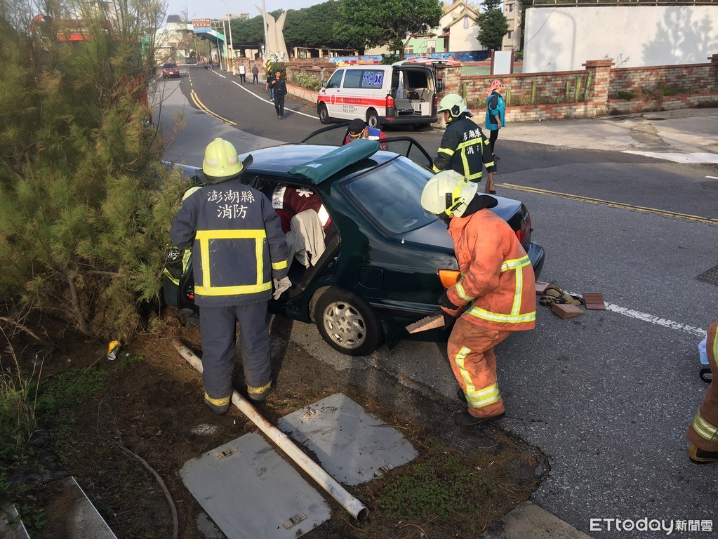 消防隊指出,白沙分隊人車到達現場,現場為一輛自小客車自撞,經查車內僅女性駕駛受困,由現場救災人員救援脫困,經評估生命徵象無意識,即於現場施行心肺復甦術、頸圈及長背板固定等相關急救處置後,送往三軍總醫院澎湖分院急救。