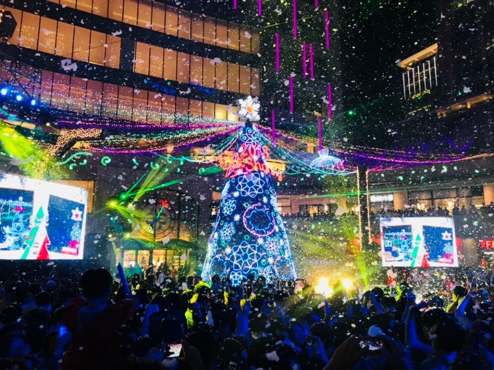「真愛光廊」:以數萬顆LED星星燈點亮2到4樓的階梯,正前方還有一座大型紅色愛心與Merry Christmas燈飾,不論是和家人朋友還是情人,都必須到這拍照打卡留念。