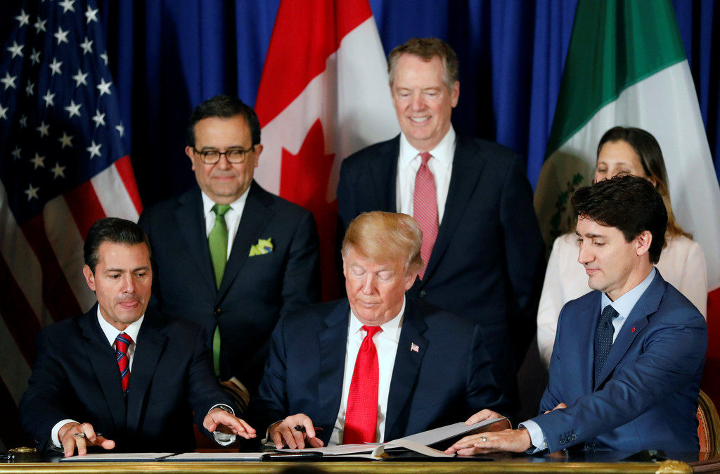 ▼剛簽署了美國乃至世界史上最重要且最大型的貿易協議之一。美國、墨西哥和加拿大在這份偉大文件上合作甚密。糟糕的NAFTA很快就會過去了。USMCA對大家而言都會很棒!