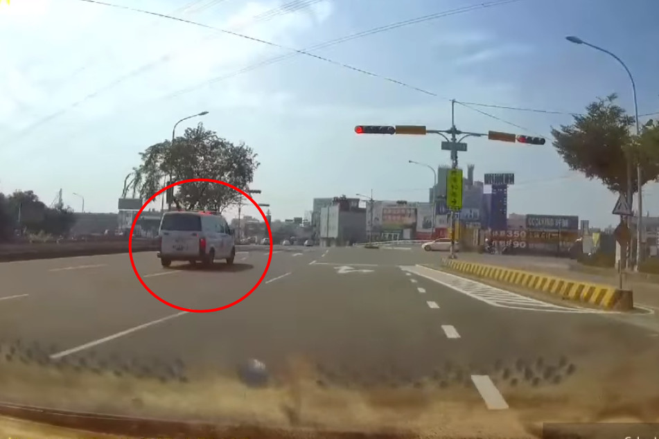 ▲▼救護車遇紅燈高速直衝,差點撞到其他轎車。(圖/翻攝自爆料公社)