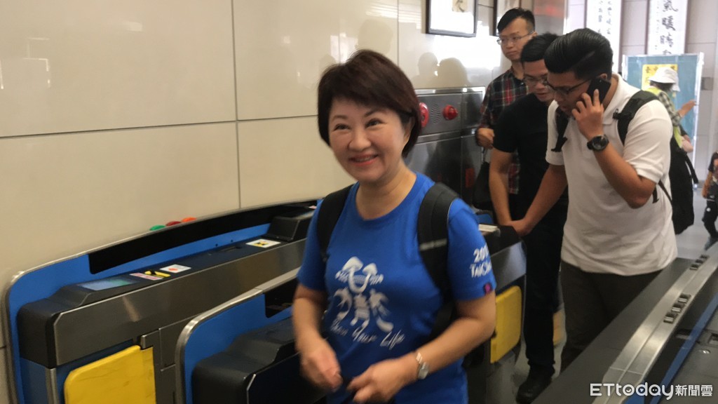 ▲台中市長當選人盧秀燕當一日市民,搭火車前往后里花博。(圖/記者李忠憲攝)