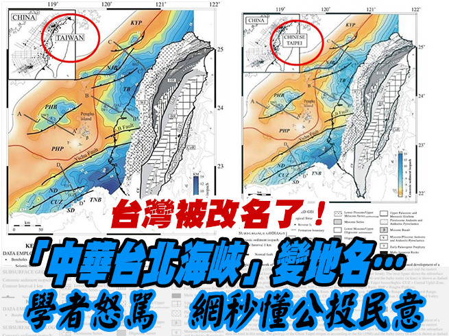 台灣被改名了!中央大學地球科學系副教授林殿順30日晚上貼臉書指出,他自己在2003年發表的論文,竟然被澳洲全球碳封存研究所(Global CCS Institute)竄改,從地名「台灣」(Taiwan)改成「中華台北」(Chinese Taipei),就連「台灣海峽」都被改成「中華台北海峽」。