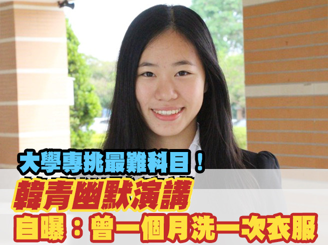 高雄市長當選人韓國瑜的二女兒韓青留著一頭長直髮,較少出現在螢光幕前,而她不同於姊姊成熟的氣質,外貌更為清秀典雅。身為理科生的韓青性格堅毅,日前一段她分享在加拿大念書的影片曝光,她用幽默又清晰有理的口條,描述著讀最難的理工科目的艱辛,贏得外界讚揚。