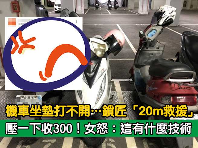 女網友忿忿地說,當下自己還很不好意思,沒想到只是這種小問題,頻頻向老闆道謝,「結果他跟我收300元!」女網友當下傻住,質疑只是「壓一下」,為何要收取300元費用;但老闆卻回應,「出門就是300,小姐,不要看不起別人的技術!」女網友聞言後更怒,在評論中砲轟「重點是根本沒用到技術,早知道求救路人就好,這種小事還以為正常人都會說『沒關係,下次自己會就好』,是台北鎖匠都這麼缺錢嗎?」