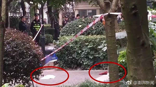 有居民提供影像稱,死者身上穿的衣物散落,手腳都和身體分離,懷疑是先被人殺害後從高樓丟下。當地警方晚間發佈通報稱,經查明死者為65歲張姓女子,因罹患癌症晚期悲觀厭世自殺,從社區34樓墜落,過程中與建築2樓平台邊緣劇烈碰撞,導致肢體嚴重受創分離,排除刑事案件。