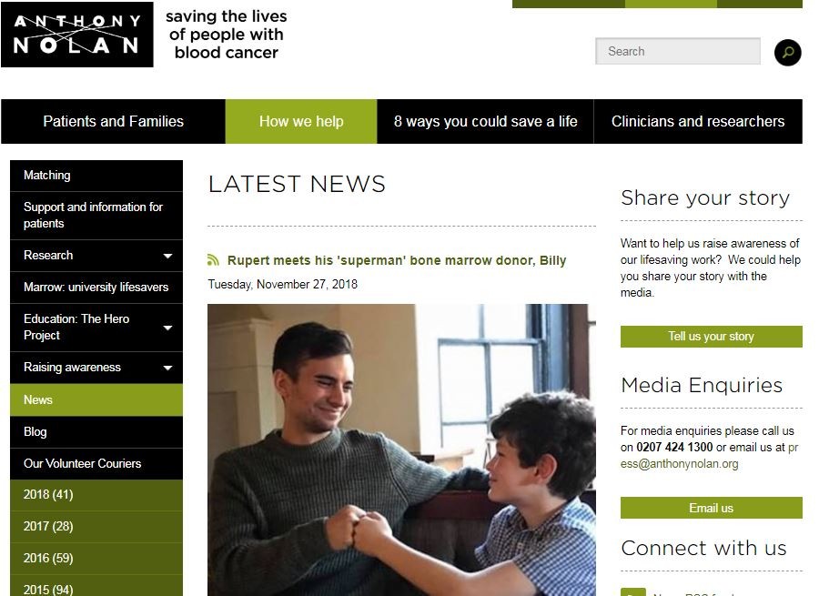 英國29歲的希金斯(Billy Higgins)7年前得知心儀對象登記骨髓捐贈者,為了追到喜歡的人,決定一同登記,沒想到骨髓剛好與一名患有骨髓增生異常症候群(myelodysplastic syndrome)的男童吻合,經過移植手術成功,男童目前已恢復健康,並被男童一家人稱為是「超人」。最棒的是,他也成功與這名心儀對象交往並結婚。
