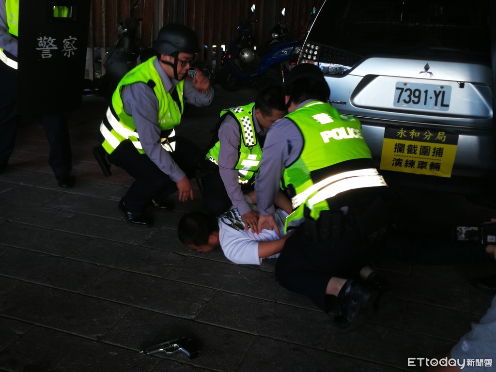 歹徒被警方逼入圍捕點後棄車逃逸,又挾持人質與警方對峙,經出動永和分局快打犯罪特警隊。歹徒終於在優勢警力及心戰喊話下棄械投降,結束模擬搶案。