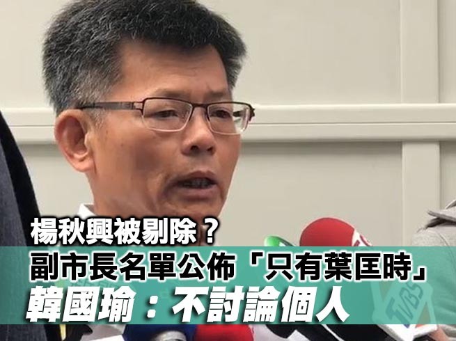 韓國瑜在高雄市長選戰中力挫對手陳其邁,替國民黨打了漂亮的一戰,成功翻轉了20年來都是綠營執政的高雄市。韓國瑜3日受頒當選證書時,同步公佈小內閣初步名單,包括副市長葉匡時、客委會主委黃永卿、原民會主委林國權等,但外界呼聲相當高的副市長人選楊秋興卻不在榜上。