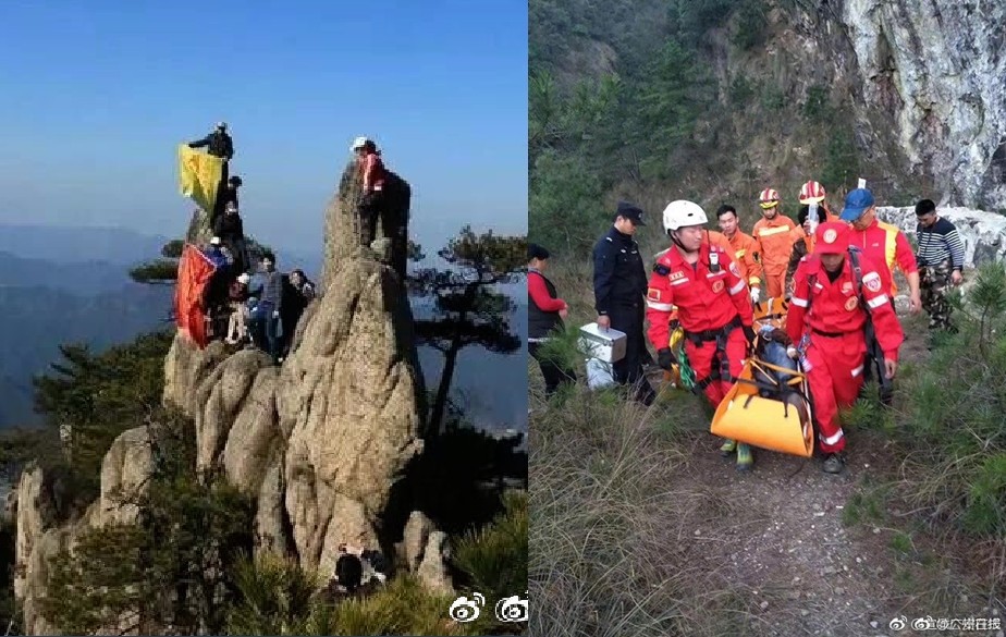 中國大陸安徽績溪縣一對夫婦為了拍攝美景,不惜涉險攀爬俗稱「草鞋把子尖」的駱駝峰,卻在拍照時不慎墜落懸崖。救援人員趕到時,發現2人傷勢十分嚴重,送醫搶救後仍雙雙身亡。