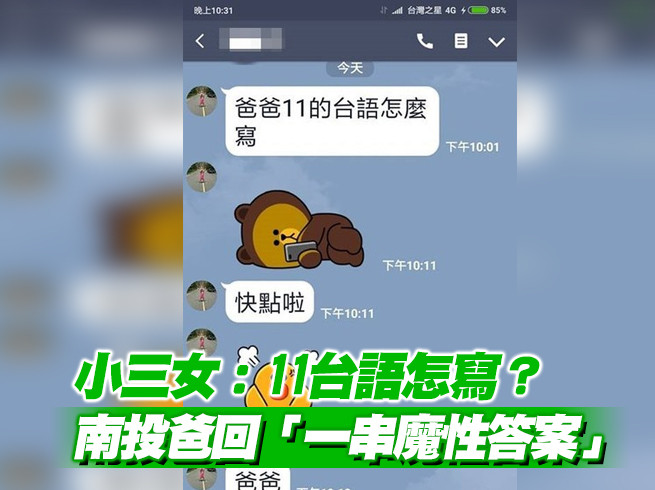 最強林老爸!南投市一名就讀國小三年級的女兒問父親「爸爸11的台語怎麼寫」,結果爸爸的回答獲得2萬3000名的網友按讚。林爸爸今天(5日)接受《ETtoday新聞雲》訪問還原來龍去脈,才發現誤會大了,他笑說,「連我老婆也一直笑我」。許多網友驚呼「這一長串答案」有種魔力,「不知不覺跟著唸了」。