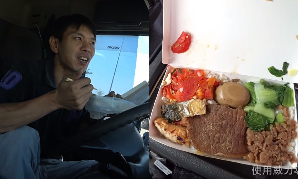 ▲大車司機YouTuber帶路吃俗擱大碗的便當。(圖/翻攝自大車蒟蒻YouTube)