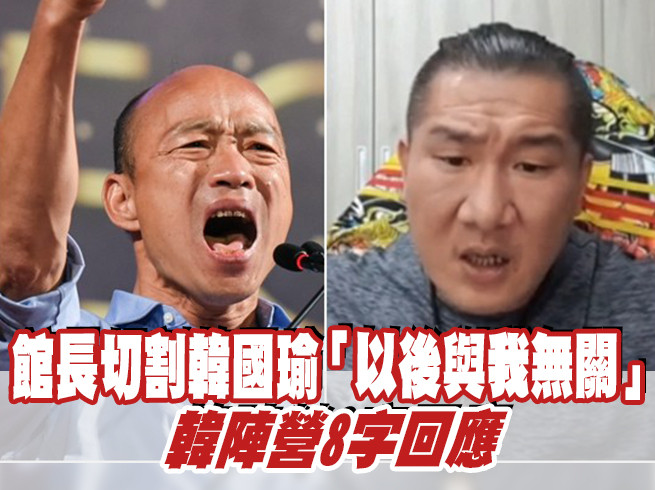 館長5日在直播中一改選前支持韓國瑜的態度,直言「從今爾後,韓國瑜殺人放火與小弟無關」,並再次強調「從今爾後,韓國瑜他要選誰,他要做什麼事,他要做甚麼政策,不要再問館長。原因是在於,他受不了「韓粉都說他是靠韓國瑜來讓自己紅,韓粉都說韓總沒做錯,韓粉都說館長現在不紅了,所以要巴著韓國瑜貪官位」,害他現在連表達自己意見,都會遭到非議。