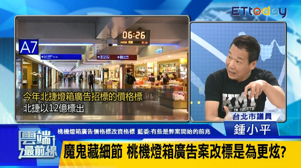 無黨籍台北市議員陳建銘4日在《雲端最前線》爆料,桃園機場的燈箱廣告去年起從一般性的「價格標」改為「最有利標」,「政治力量介入」的揣測隨即在業界引發關注。台北市議員鍾小平6日提到,最有利標應該是對人民、國家有利,而不是對得標廠商最有利。