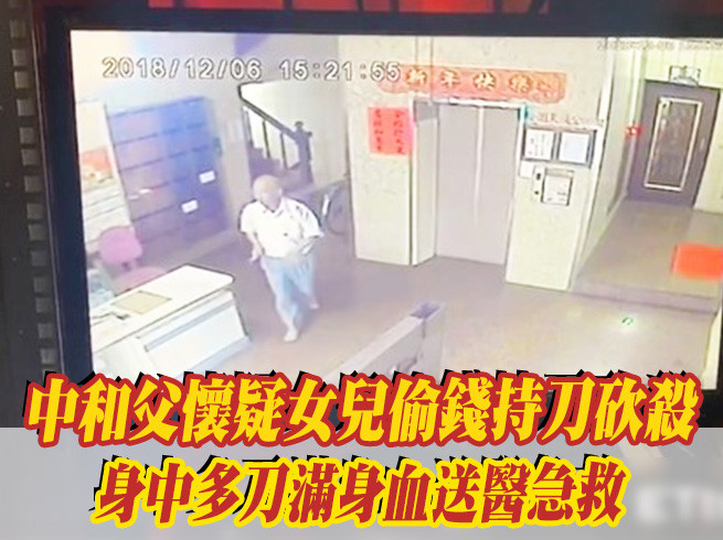 警方調閱監視畫面,發現周女遭父親砍殺後,渾身是血,倉皇從家中奪門而出,一路跑下樓梯逃命,過程還向大樓管理員求救,而周父則一路緊追在後,下樓甚至朝管理員揮舞水果刀,讓管理員嚇得不敢輕舉妄動,趕緊報案。