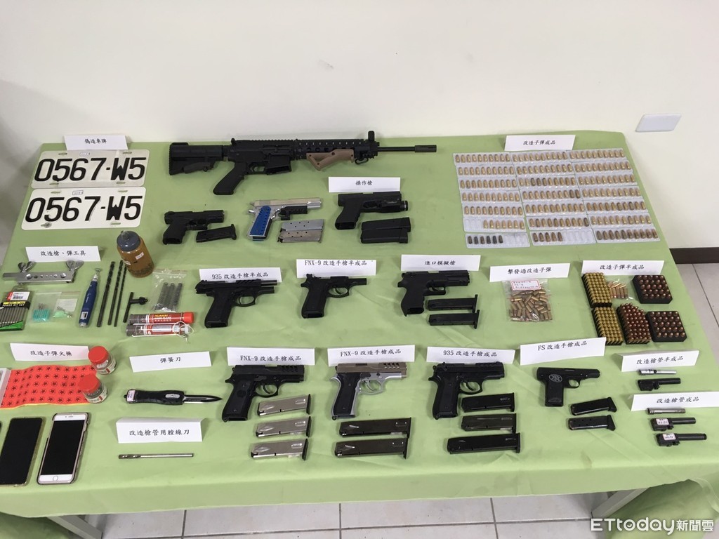 警方繼續追查下去後竟發現,此案的檢舉人張男,也疑似從事槍枝改造行業,而警方經長期蒐證後,赫然發現張男家中竟宛若小型兵工廠,當場查扣金牛座改造手槍4支、半成品1支、模擬槍1支、操作槍4支、改造子彈196顆、鑚床1台、拋磨機1台、火藥2罐等改造工具。