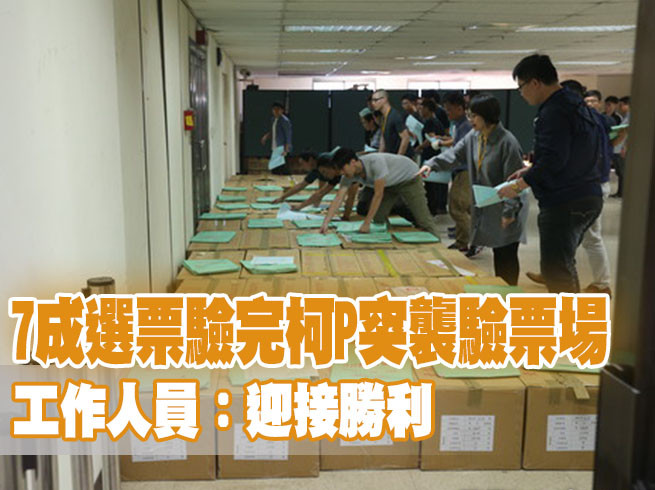 台北市長選舉驗票進入第5天,7日全天共驗250箱,北投區、萬華區都驗畢,開始進入大同區部分,5天以來共累積驗完1122箱,已超過全台北市1563個投開票所的7成,目前柯文哲的票數還是領先超過3000票,柯文哲中午12點半乘車到信義行政中心幫律師加油打氣,有工作人員開玩笑,柯市長是來迎接勝利。