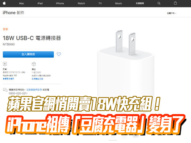 ▲iPhone「豆腐充電器」終於變身了,官網開賣18W充電器。(圖/取自蘋果Apple Store官網)