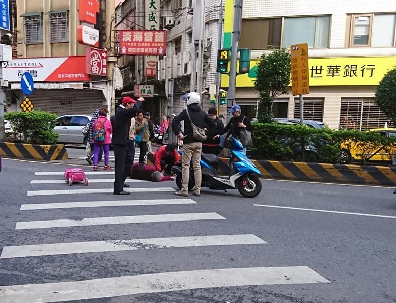▼淡水一名買菜阿嬤沿斑馬線闖紅燈遭撞倒。(圖/翻攝自細說淡水)