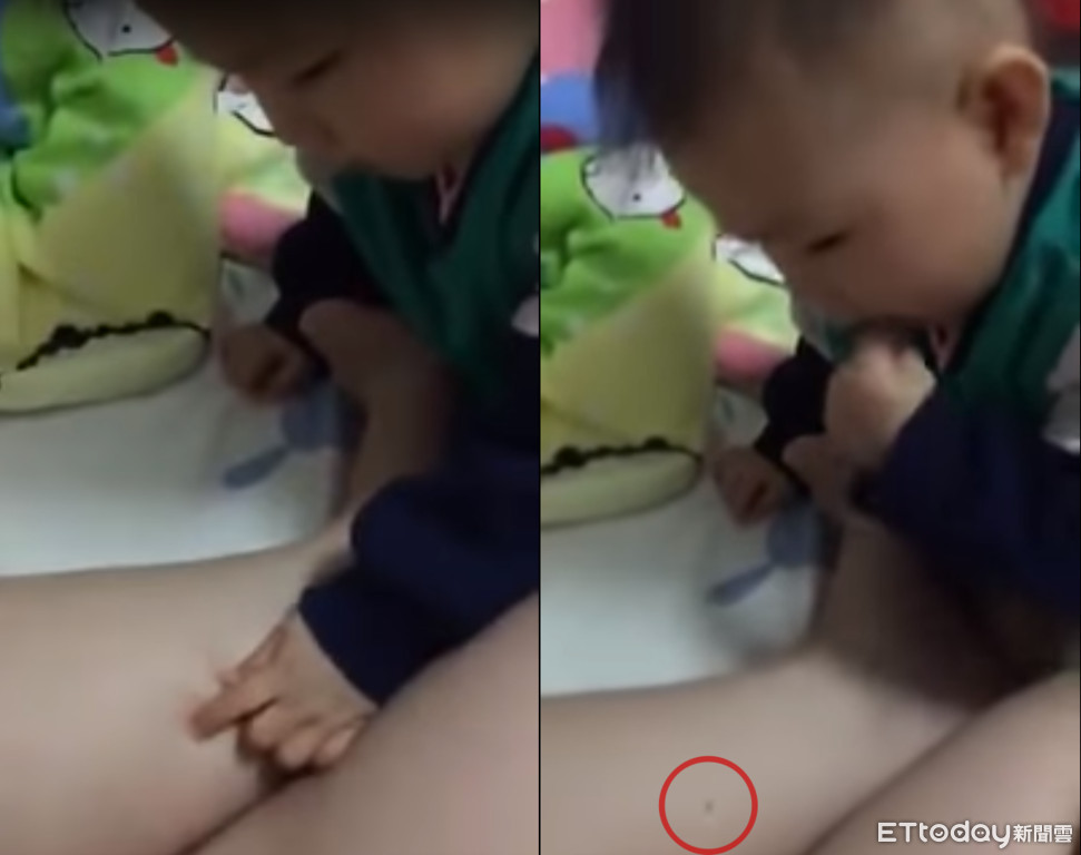 這位女嬰叫做「甜筒」,是個10個月大的小吃貨,影片中可見,她以為媽媽小腿上的「痣」是掉落的食物,就用小小的食指和拇指把痣捏起來往嘴裡送,發現挖不起來還重複動作約4、5次,緊緊盯著目標、不放棄的模樣萌翻網友,卻也讓媽媽非常頭痛。