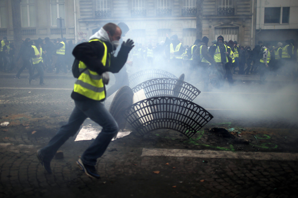 法國「黃背心」示威自11月開始醞釀,已持續了4周,12月1日的抗議更堪稱「巴黎50年來最慘暴動」。為了保障記者採訪時的安全,法國多家媒體準備了頭盔和防毒面具,甚至派出保鑣。當局統計,這個周末全國共有12.5萬人走上街頭,135人受傷,1385人被逮捕。群眾原本主要抗議調漲燃油稅,但怒火已經燒到總統馬克宏(Emmanuel Macron)個人身上。