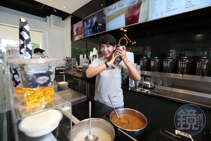舀糖、盛冰、倒茶,一眨眼功夫,KOI集團董事長馬雅芬炯炯目光集中在半舉雙手上的雪克杯,冰塊撞擊發出清脆聲響,經過手搖的茶湯倒入外帶杯,頂層飄浮細緻泡沫,30秒不到過程中盡顯俐落,就連等待區原本低頭滑手機的客人,都對吧台「嬌」點行注目禮。
