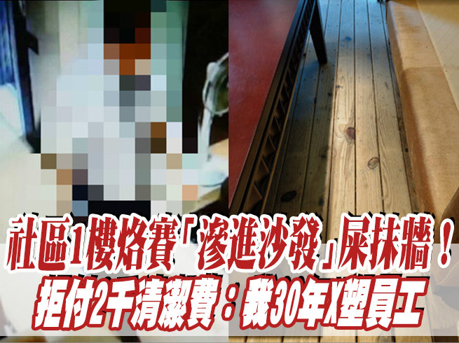 一名住戶幾個月前在社區公共沙發午睡時,突然憋不住烙賽,就這樣一路拉到2樓廁所,把整個洗手間和牆面弄得都是,而排泄物還滲進沙發裡。管委會事後決議請他支付2000元清潔費;沒想到他不斷出言羞辱,也堅持拒賠償。