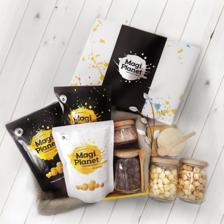 MagiPlanet星球工坊爆米花是來自台灣的爆米花品牌,從對產品的高品質要求,在原料上堅持嚴選美國非基因改造玉米粒,用心的職人手工爆炒製作以及獨創1CM過濾網淘汰口感外觀不佳品,讓每一顆爆米花渾圓飽滿,更創新研發高達20種以上獨家口味,創造吃不膩的多元驚奇感。 產品系列共分為經典、極致、奢華三大系列,口味有玉米濃湯、焦糖咖滋、玫瑰鹽焦糖、特濃起司、原味鑽石、海苔章魚燒、蔗香焦糖、三島海苔、魔法泡菜、川香麻辣、辛起司、黑胡椒玉米濃湯、酸奶洋蔥、爆濃起司、焦糖鹹蛋黃、松露巧克力太妃、太妃焦糖、特濃巧克力、宇治抹茶太妃、更多不定期推出的創新口味,最近超商通路也可以看到聯名快車肉乾香脆肉紙口味和歐可茶葉真奶茶口味的爆米花,每一款吃起來都超驚豔!非常適合愛冒險、愛嘗試的你!