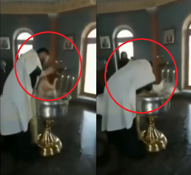 俄羅斯一名2歲女孩先前被認為「撒旦上身」,於是被帶到一間教堂進行洗禮,但是為她執行儀式的神父伊利亞(Ilia Semiletov)竟然硬抓著她的頭,粗魯的塞入水中3次,讓小女孩痛苦的不斷哭泣掙扎,而一旁雖然站有其他人,不過不僅沒有人伸出援手,反而還聽到其他大人的訕笑聲,場面十分荒唐。