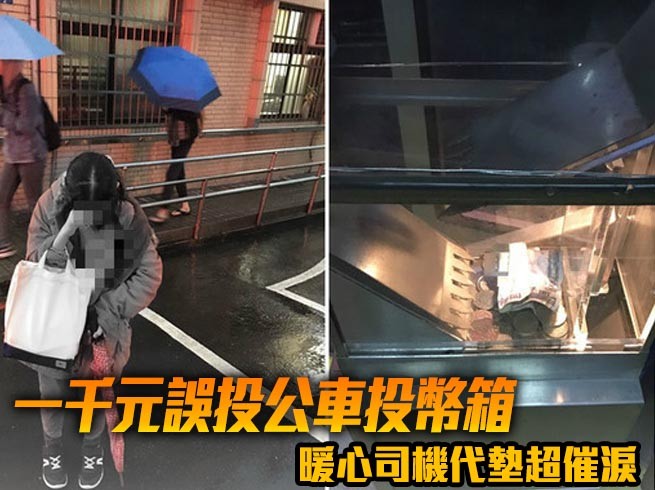 一名國小女學生12日晚間放學搭601號公車到市區,上車投零錢時,不小心把手上的10元及一張千元大鈔一起投進去,而眼尖的許姓公車司機看到後立刻提醒她,但因無法當場開起錢箱,小妹妹在車內焦急地大哭。許姓司機邊安慰小妹妹不要擔心,邊將她載回總站,但礙於開啟投幣箱又有程序要執行,這時在站內待命的倪姓公車司機見狀後,實在是不忍心,馬上先行墊錢給小妹妹,這時小妹妹才收起眼淚開心地說謝謝,自行離去。