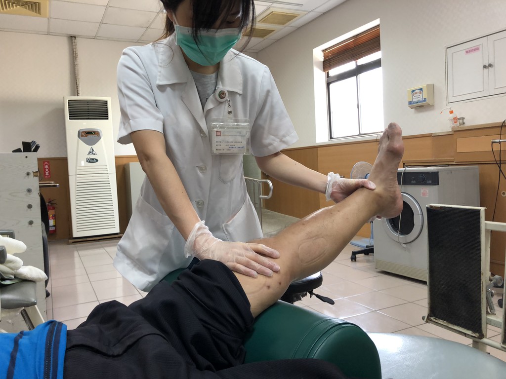 陳男家住員林市,從事機械工程,「退而不休」到台中市一家環保工程公司打工,8月間被工地挖土機的挖斗撞擊,跌落挖好並綁鋼筋的坑洞,造成身體多處擦傷,左腿特別痛,送醫檢查出左腿膝蓋以下的脛骨粉碎性骨折,醫師加以固定和治療,經過兩個月傷勢逐漸穩定,但長時間固定也使得左膝、左足踝僵硬,影響行走及日常蹲、站功能。