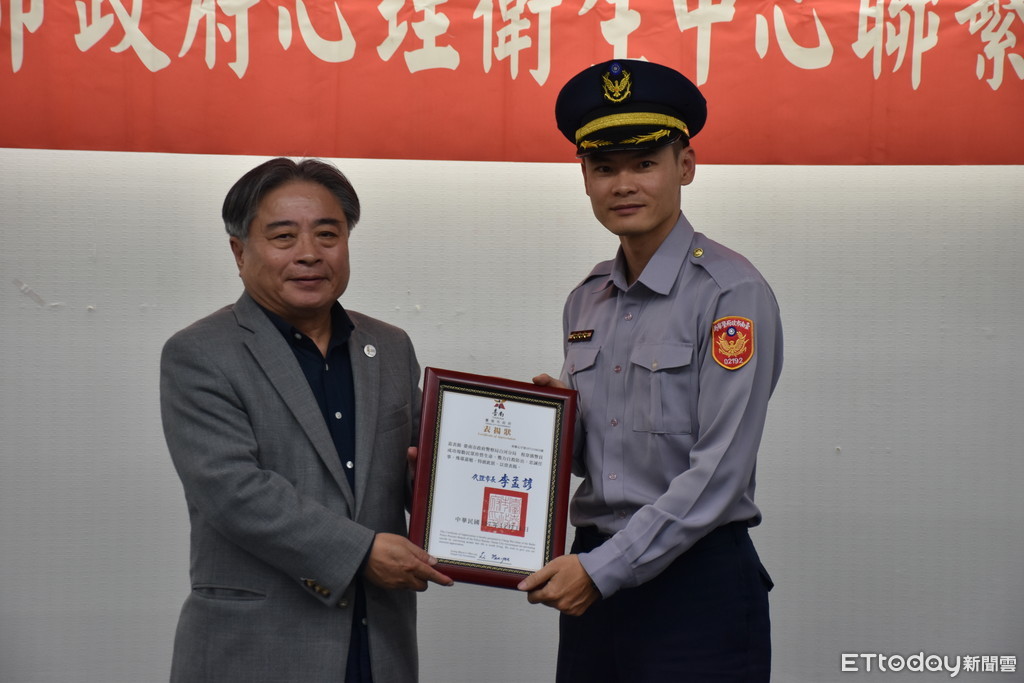 ▲台南市白河分局仙草派出所警員程韋僑,因接獲自殺通報處置得宜,在台南市政府召開心理健康推動會年終檢討會,由副市長張紹源親自頒獎表揚。(圖/記者林悅翻攝)