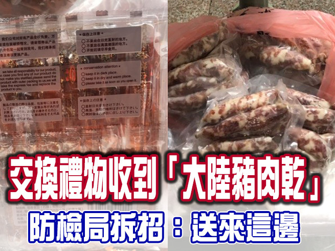 非洲豬瘟疫情在大陸不斷延燒,為防堵病毒侵台,防檢局除了宣傳之餘還特別修改《動物傳染病防治條例》,大幅提高罰金。有網友在Dcard上發文,表示近日交換禮物收到來自大陸的豬肉乾,引起網友熱烈討論:對此,防檢局則回應,執法需要有明確對象,只要知道是誰帶進來的,就可開罰。