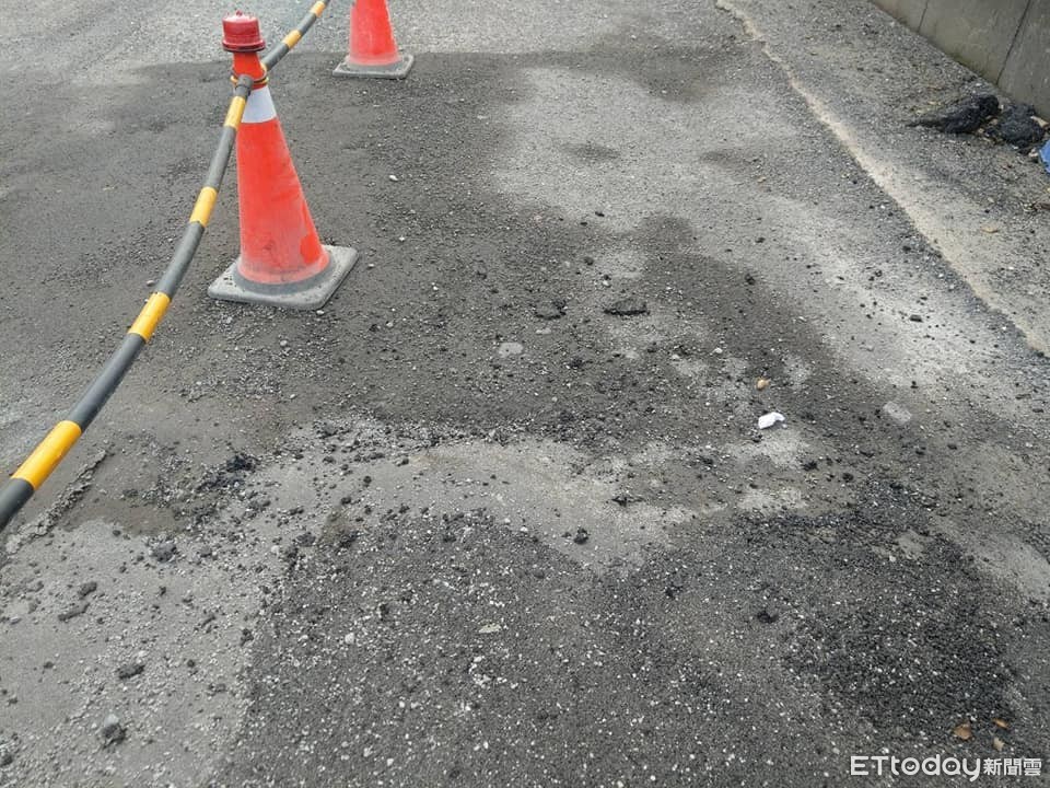 ▲臉書《汐止集團》有網友拍攝事發地點,道路充滿砂礫造成接連多起騎士自摔。(圖/記者張君豪翻攝)