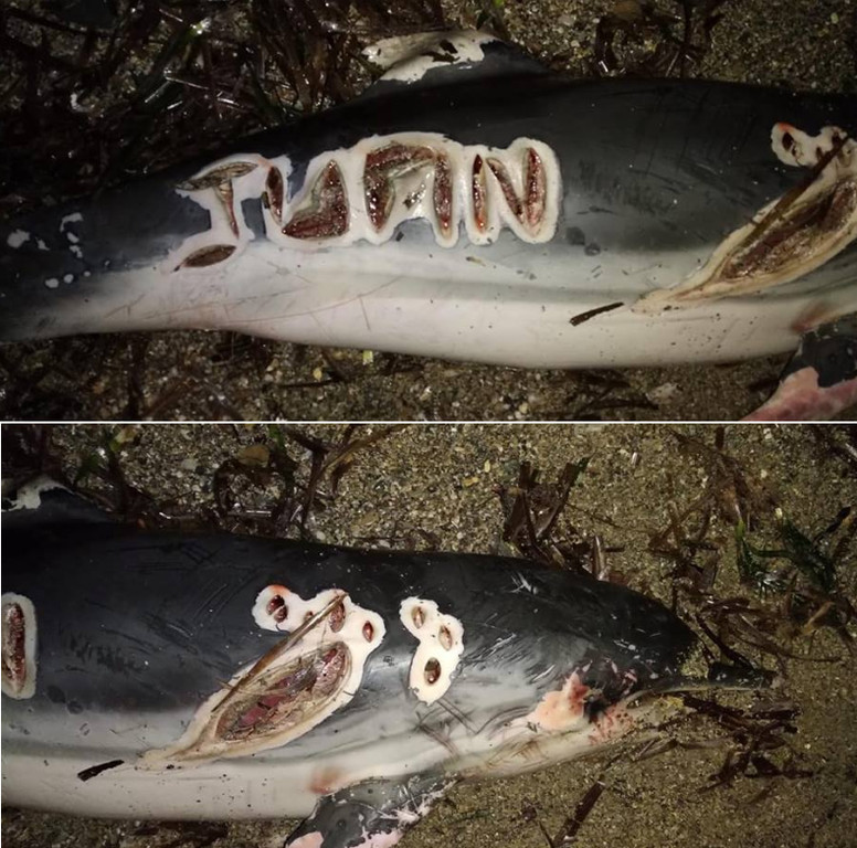 ▲海豚的屍體上被刻上名字。(圖/翻攝自Facebook/Equinac)