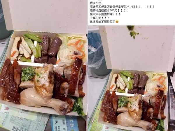 該名男網友在臉書社團「爆怨公社」刻意說反話,請大家千萬不要去買高雄這間燒臘店,因為他每次排隊都需要排30分鐘,「千萬不要!!!這樣我就不用排隊了」。