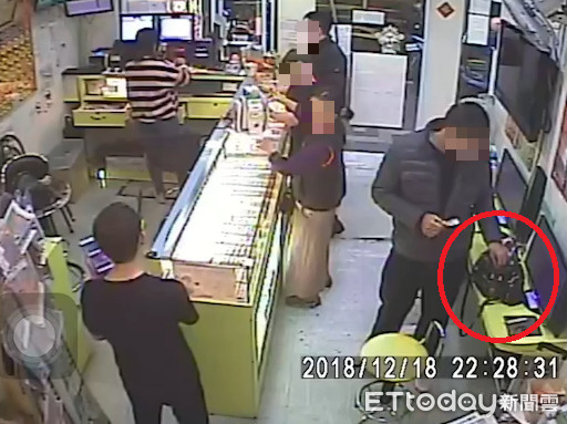 ▲犯嫌在被害人面前大膽行竊,抽取包包內鈔票後離開彩券行。(圖/記者林煒傑翻攝)