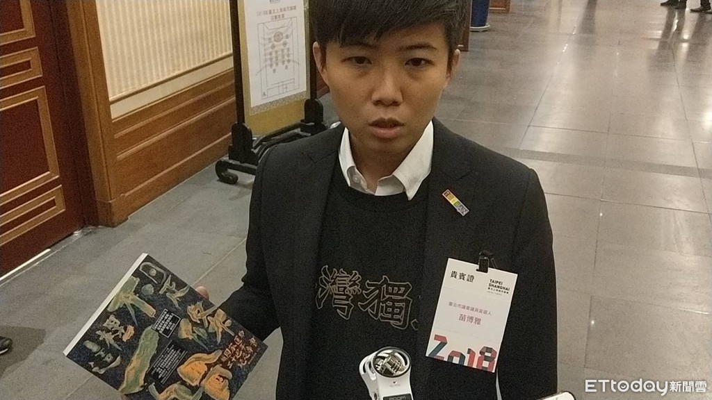 2018台北上海雙城論壇20日登場,台北市政府19日晚間在圓山飯店舉辦晚宴,歡迎宴也邀請不少議員出席,其中,社民黨議員當選人苗博雅在西裝內著寫有「台灣獨立」的毛衣。苗博雅受訪表示,對等跟尊嚴是交流前提,要交朋友一定是要把對方當成獨立個體才有辦法真正交朋友,「我想我們今天來到這邊用和平方式表達態度,也確實證明交流我們可以站著交流,不一定要卑躬屈膝跪在地上,大家都和平理性不會有太大問題。」