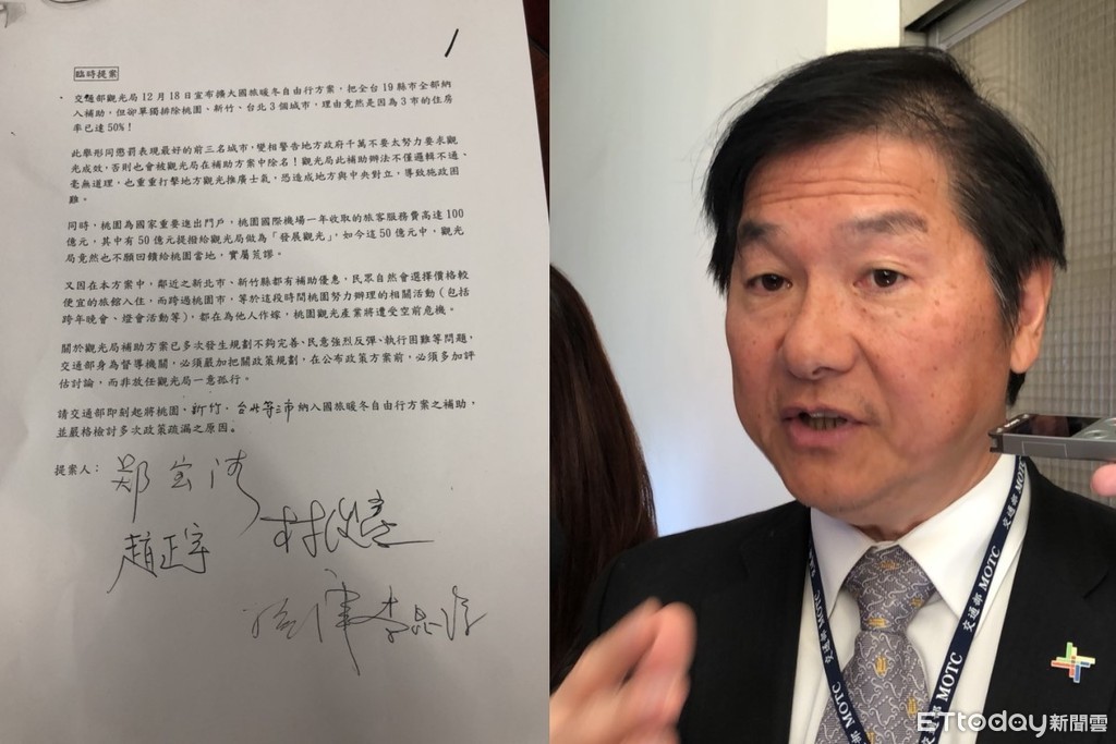 這份臨時提案由立委鄭寶清、鄭正宇、林俊憲、葉宜津和李昆澤提起,內容提到請交通部即刻起將桃園、新竹、台北等3市納入國旅暖冬自由行之補助,並嚴格檢討多次政策疏漏原因。