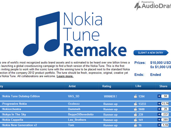 距離比賽截止時間越近,網友們就越好奇Nokia會不會信守承諾,採用惡搞版鈴聲為冠軍。不過隨著結果出爐,大家也都心知肚明了,在眾多作品中脫穎而出的冠軍作品是由義大利DJ創作的「Nokia Tune Dubstep Edition」,他那偏向電子音樂的風格卻不受到歡迎,失望的網友們很不客氣的給予他非常糟糕的評價,並向Nokia嚴正抗議,表示他們絕對不想用這種鈴聲,逼得官方不得不發布聲明平息眾怒,Nokia說,這個鈴聲並不會作為預設鈴聲,請網友們不要擔心。