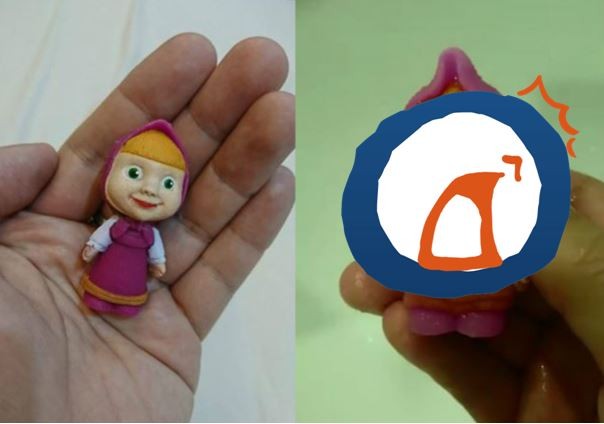 這名爸爸表示,他當時照著玩具說明,將小公仔放進水中,沒想到過了2天的浸泡後,公仔竟像「泡過福馬林」一樣,身體腫脹比原本大上2倍,傻眼直呼「這根本就是醜比頭」。他還將浸泡過程的影片放上網當證據,呼籲家長們真的要慎選小朋友的玩具。