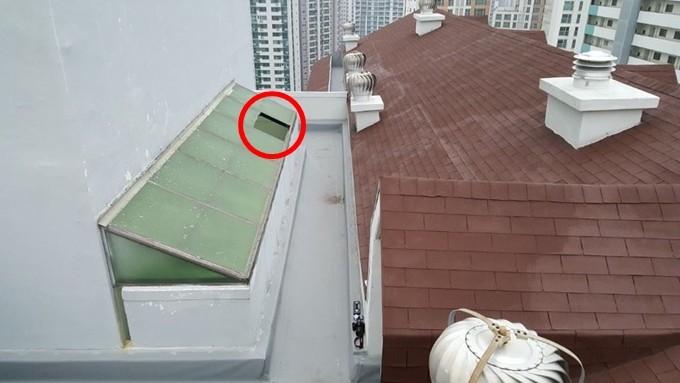 ▲ 綠色的壓克力遮雨棚被踩破。(圖/大邱警察廳)