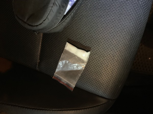 ▲▼龜山警方於陳姓夫妻車內,起出K他命毒品1小包。(圖/龜山警分局提供)