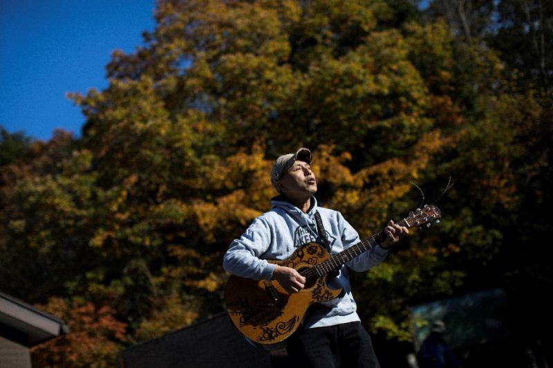 ▲ 渡邊經常在青木原樹海彈奏歌曲,藉此安撫企圖輕生的人們 。(圖/翻攝自NST_Online推特)