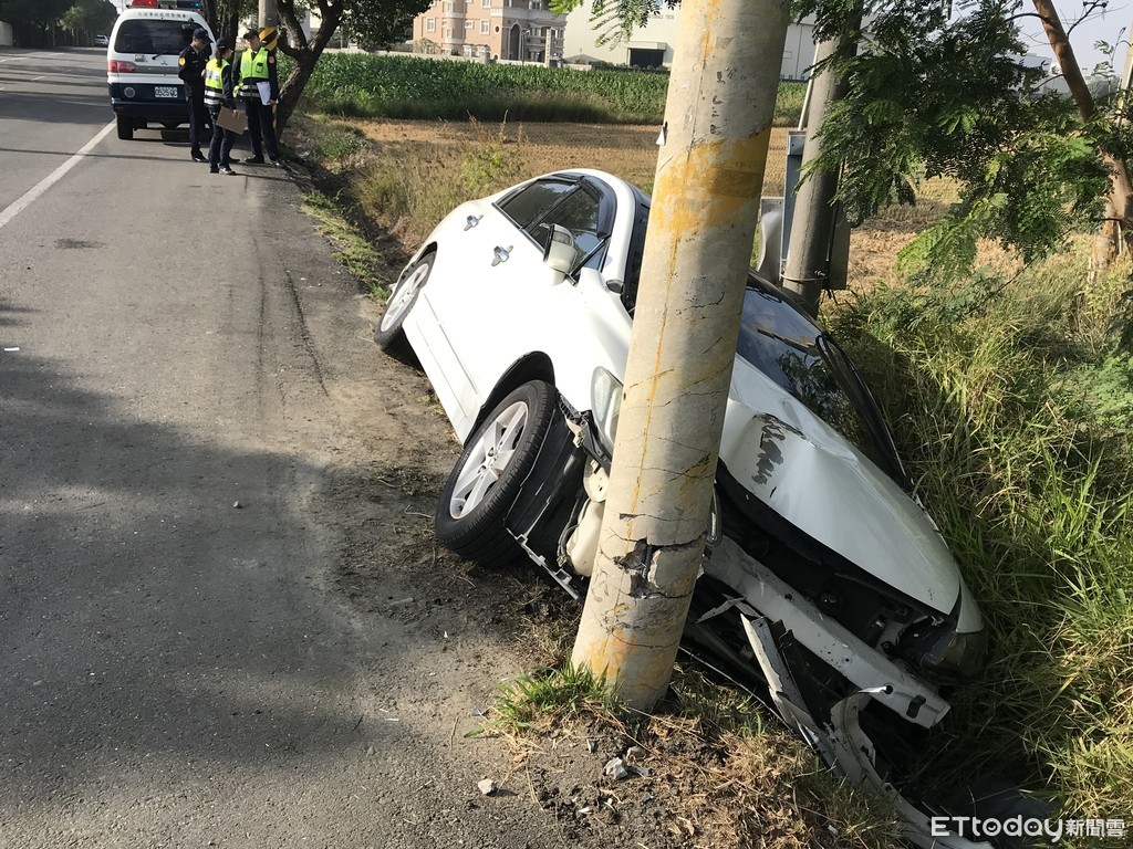 警方於事故現場發現,車內只有駕駛55歲曾姓婦人,車頭由於撞上電線桿明顯凹陷,撞擊力道相當大,但地上沒有明顯煞車痕跡,初步研判是從對向車道逆向衝撞對向車道,再撞到路旁電桿車子才卡在水溝,至於為何會發生自撞意外,警方持續調查中。
