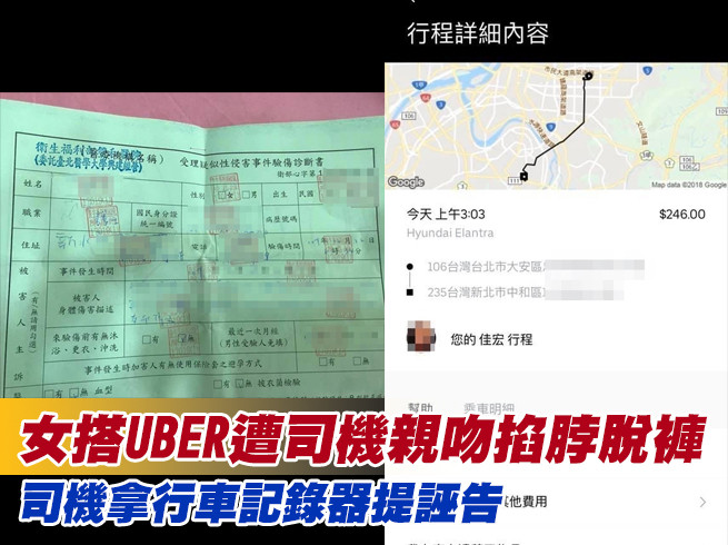 ▲1名女子在22日凌晨疑似遭到UBER司機性騷,目前警方已經展開調查。(圖/翻攝自爆料公社)