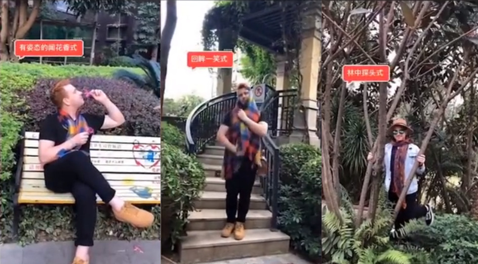 拍美照是媽媽們旅遊「必備行程」,不過有外國網友發現,中國大媽有7款熱門拍照姿勢,於是就與女友合作,錄製影片上傳網路,意外引發廣大回響。只見他戴著「拍照三寶」中的墨鏡、絲巾猶如「大媽上身」,無論是林中探頭、指向天邊、草坪捧臉畫面都沒有一丁點違和感,網友看完影片都說「彷彿看見自己親媽呀!」