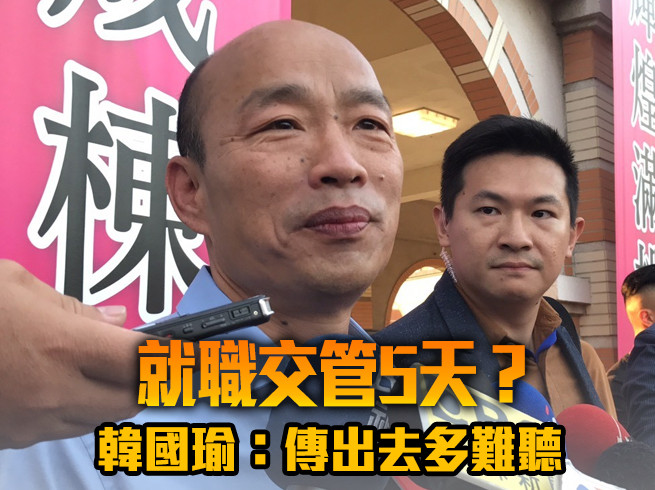 準高雄市長韓國瑜25日就職典禮首度移師戶外,高雄市交通局21日晚間卻貼出公告,將實施5天相關交通管制封路,範圍擴及會場周邊6條街,消息曝光後引發批評,有人認為「史上最高調」、「皇帝登基?」對此,韓國瑜23日受訪時沉重地說,不曉得警察局跟交通局為什麼要這樣,哪一個人可以接受五天交管,「好像我這個人不食煙火,非常重視官威派頭?我是菜市場出身怎可能這樣!這傳出去多難聽 我們不是這種人,我們是非常平實踏實的」。