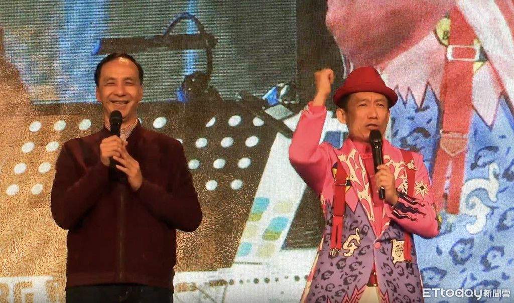 ▲郭子乾高喊「2020凱道歡樂耶誕城,一定有朱市長」,朱立倫燦笑。(圖/記者羅婉庭攝)