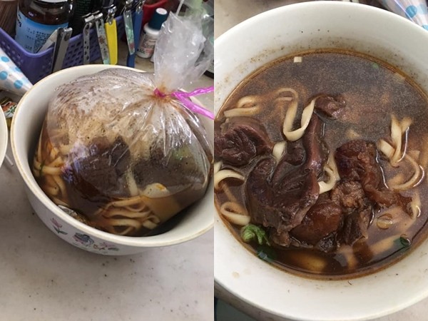 該名男網友在臉書社團「爆廢公社二館」po文表示,牛肉麵老闆本用湯勺慢慢將肉塊抖進袋子內,「我看他用抖的,想要抖一兩塊肉進去,一直抖一直抖」,由於肉塊都不動,老闆也直接用力一抖。