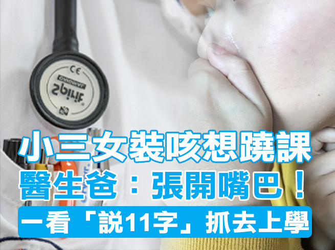 躲不過專業爸爸的眼睛啊!一名女網友分享小時候裝咳嗽不想上學,想騙過當醫生的爸爸,聽完說了11個字後,就被抓去上學。有人笑說,「爸爸那關過不了,我都叫阿公。」